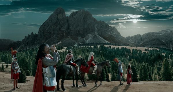 The works are photographed in solitary and puissant landscapes, reminiscing of