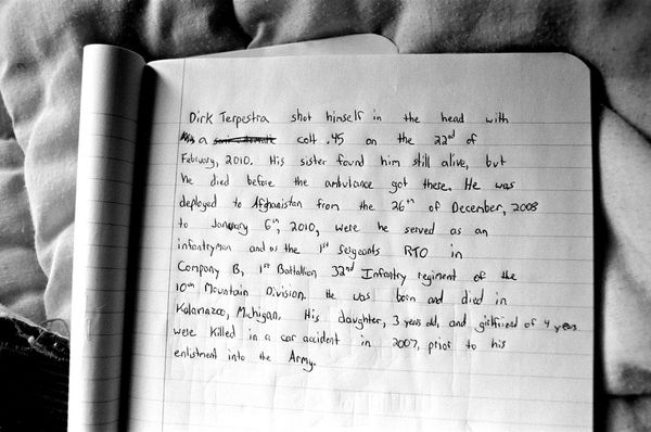 From 2009 – 2011 I documented the US military’s 10th Mountain Division in Afghanistan. Since 2010 I have continued photographing the lives of service members after they return home from deployment, which includes a six month-span in 2010 where I lived at Fort Drum’s 10th Mountain US military base to photograph infantry service members’ to-day-day lives. My photographs illustrate service members at war, coming home from war, and returning back to war again – a decade long cycle experienced by millions of American families.