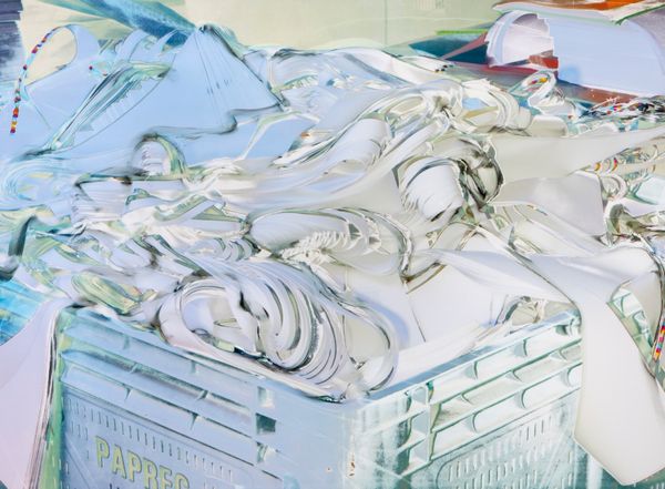 • Motor systems, office desks, storage rooms, paper wastes…This new series focuses on the uneventful, on things we don’t care to notice. How familiar they might initially be, these objects are estranged, distorted, made unrecognizable – requiring a perceptive effort from the viewer to decipher what is represented. Could you tell us a little more about your process? What do those formal experimentations speak for?