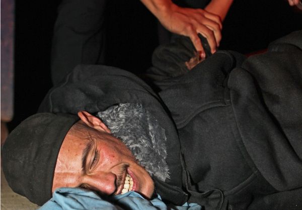 Twelve undocumented Oaxacan farmworkers packed into a garage on Fourth Street in Huron, California sleep as El Gato slides from his bunk, dresses, and joins a procession of silhouettes emerging from holes in the ground, bushes, and various camps. Carrying backpacks, the farmworkers converge on a clot of buses parked along Lassen Avenue. Stomping their feet, spitting, and coughing, they crowd forward as each bus arrives. Hands upraised, they shout “Yo, aqui, aqui” (Hire me.”