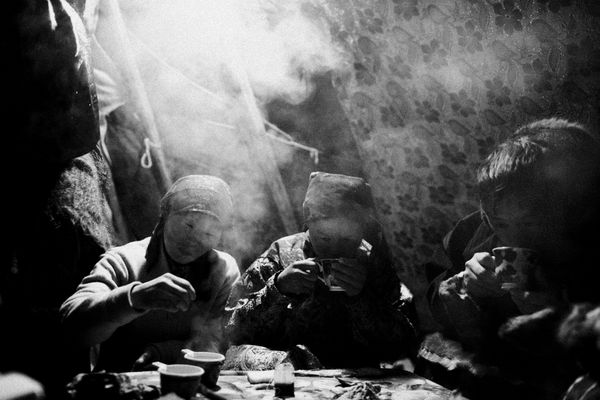 Reindeer breeding is for a very long time the main occupation of Khanty people living in Tundra. In the end of each year reindeer-breeders carry out the slaughtering of reindeers to get winter stock of meat, make new warm cloths and to have some money to buy snowmobiles and portable generators. They run their herds hundreds kilometers to slaughterhouse to count and select animals. Some animals are slaughtered while others left alive. Slaughtering season is up to one month depending on the number of reindeers. It takes 1 or 2 days to deal with a 2,000 animal herd. Despite the fact that Yamal region is very reach and full of "gas money", only a few slaughtering stations use more or less civilized methods of slaughtering. The whole process hasn't changed for hundreds years: 15-20 reindeers are penned one by one and breeders decide the death and life dilemma for the animals... Blood on the snow, body pieces and animal skins... Smell of death over this "North corrida" throws reindeers into horror and rage. Sometimes breeders leave the place with their broken ribs, hands or legs like matadors. No matter how dangerous and heavy this job is the atmosphere of savage and revelry reigns over the place.