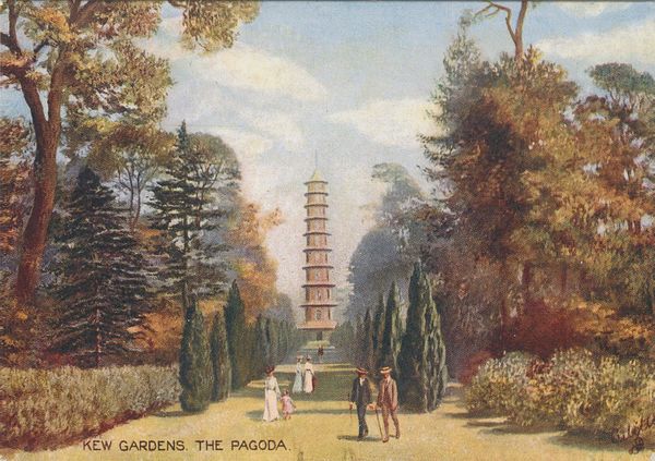 In the 17th and 18th centuries, while Europe was experiencing a wave of Chinoiserie, Sir William Chambers built a replica of the Porcelain Tower of Nanking at Kew Gardens in 1762, which was destroyed by the Taiping army in 1856. No photographs of the Porcelain Tower were left before photography was widely used. There are subtle differences in the depiction of the Porcelain Tower in the imagery preserved in the East and West, leading to misunderstandings; for example, the number of storeys of the Porcelain Tower in Nanking is shown in European prints and book illustrations in both nine- and ten-storey versions. However, according to Chinese Han Buddhist tradition, in most cases, the pagoda must have an odd number of storeys, and the Nanking Tower is nine. The fact that the pagoda at Kew Garden has ten storeys raises the suspicion that it has been misrepresented by the image. From the widely circulated oriental images of the Chinoiserie period to the pagoda scene at Kew Gardens, the Porcelain Tower became an iconic symbol of the early Western world's imagination of the East.