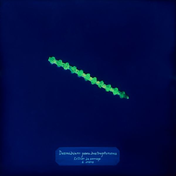 With the creative image, I offer a new form to the destroyed world of tomorrow by reinventing its structure: plastic materials become the new representative form of microbiomes and plankton. Through the game of mimesis, I replace the real and anticipate a future through a projective image. Plastic waste, recovered from beaches and bins, allows me to reproduce these underwater species using a scientific and documentary approach, frontally on a cyanotype background. Using the orotone technique, I apply fluorescent paint on a second glass plate on the emulsion side. The use of fluorescent paint is here to recall the fluorescent protein of certain organisms. We are entering a psychedelic delirium: the tentacles ignite, the jellyfish light up... Inspired by Anna Atkins’ “British Algae” herbarium, or Ernst Haeckel’s sublime plates on “The Artistic Forms of Nature”, these productions are a dialectical tension between the sublime and the derisory of a nature damaged by the hand of man.