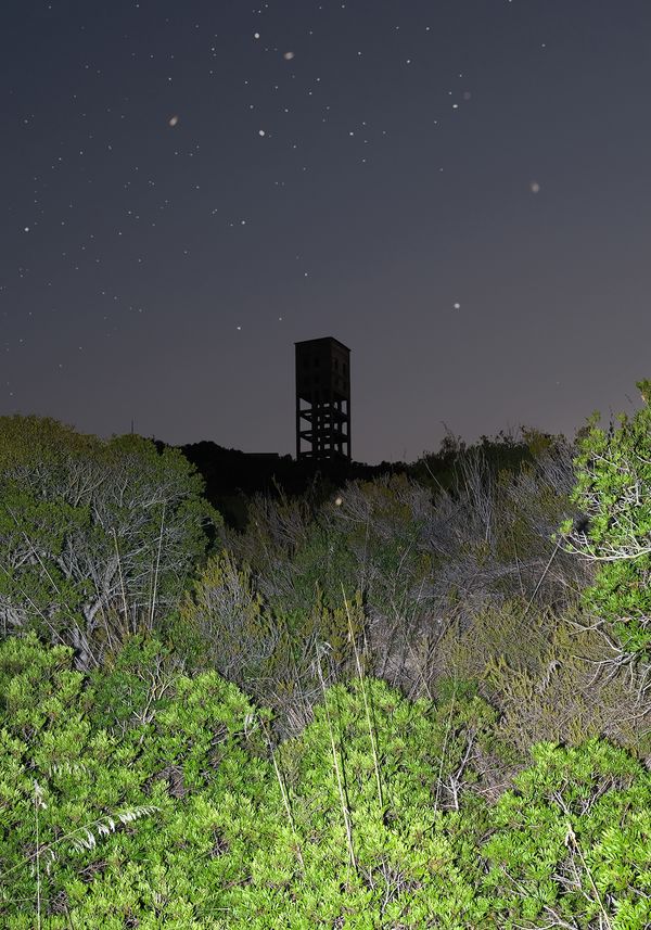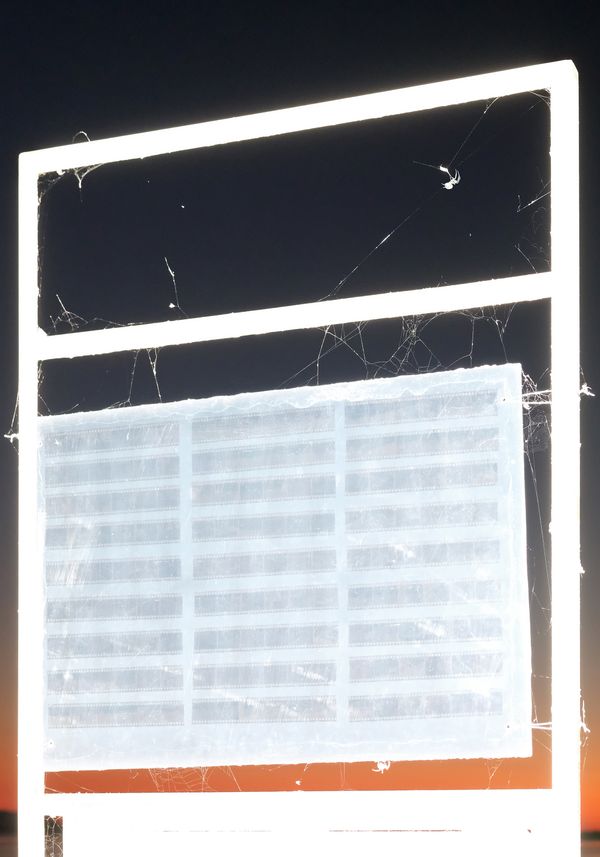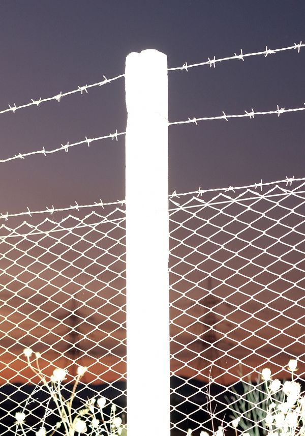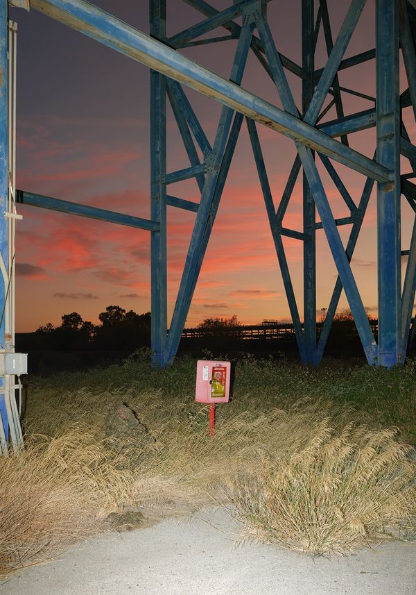 To depict it, the work refers to the the post-atomic movies imagery and to the documentary photographs of nuclear experiments, adopting their visual languages. Alluding to the countless images from documents and movies on the subject, the use of the flash simulates the glow of an explosion and reveals the microcosm of what lays in front of the camera. At the same time, however, it betrays the lonely presence of the photographer, alone in an otherwise uninhabited landscape. Thus, an artificial light is superimposed on the natural one, in the useless act of freezing, within the photographic instant, a sunset that inevitably preludes to the night.