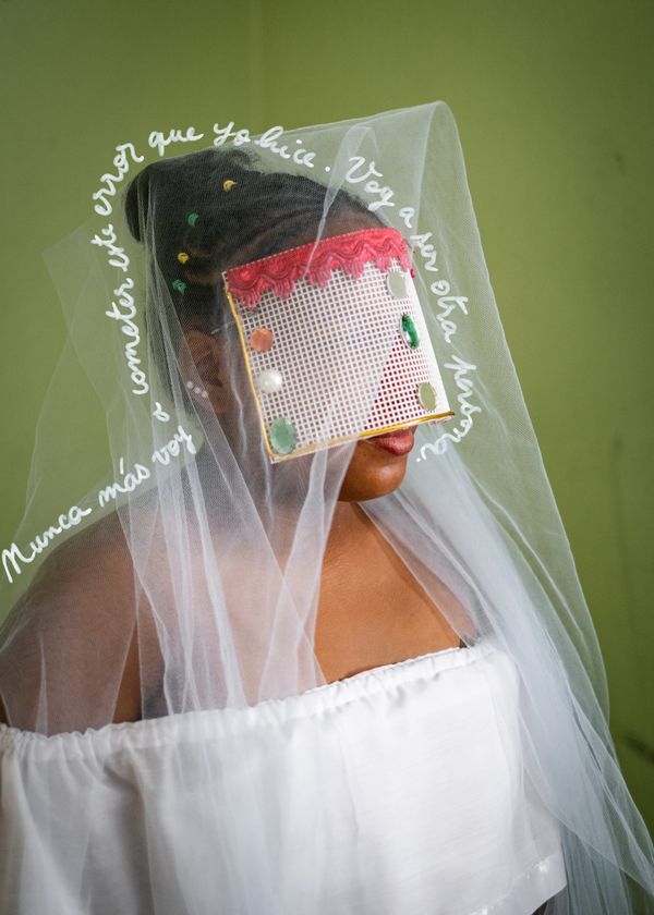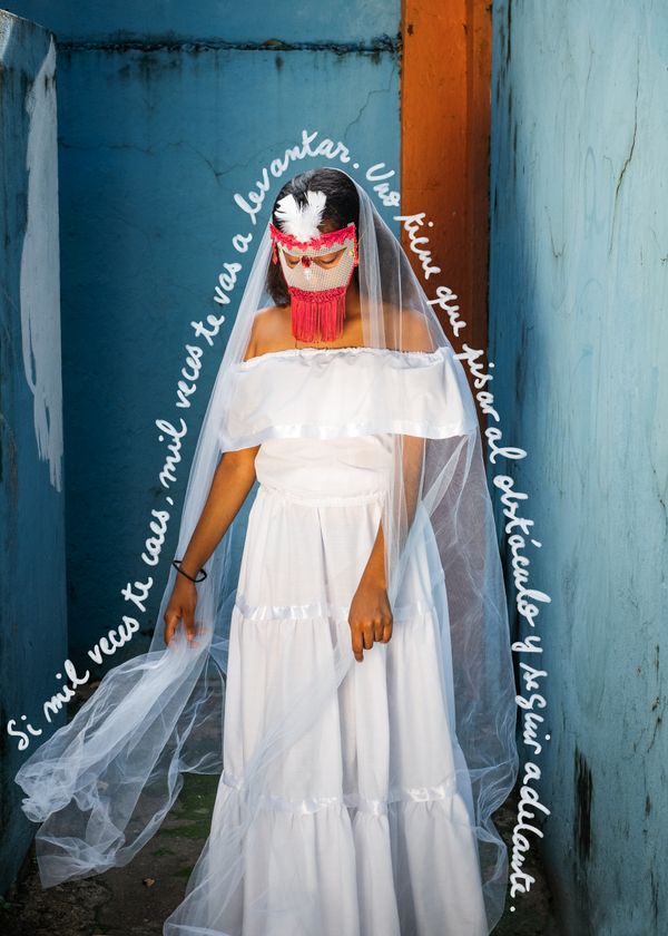 The idea came quickly to work around the mask, a central element of Dominican culture and which allows the creation of an imaginary character. Each participant made her mask from various manufacturing elements (fabrics, ribbons, veils, beads, etc.) from the local culture. This was complemented by a traditional white Dominican dress made especially for the occasion.