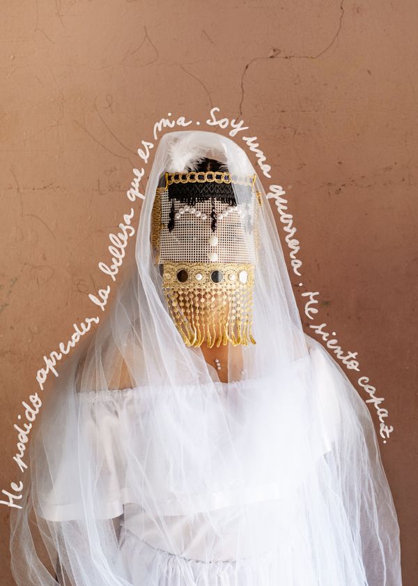 To complete the process, Delphine Blast asked each participant to project herself into the future and to send a message to herself: from the free adult woman to the young girl they were when the photo was taken. Excerpts from these interviews were then hand written on each image.