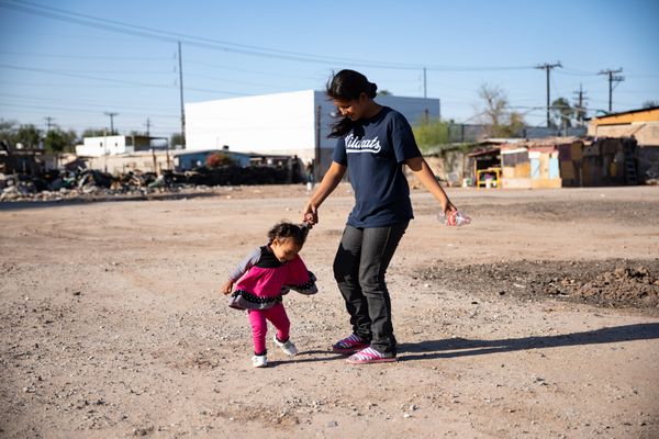 Fighting increased in cruelty yearly and in the wake of undeclared wars between state and gangs, depopulated neighborhoods, civilians struck by stray bullets and inflicted by trauma of daily horror, Moises, Meya and their baby Jimena were left no choice but to leave Honduras to age far away somewhere safe in peace. They cross borders in busses and trains until the young family reached the US-MEX border when the tracks ran out in Mexicali; where they wait to secure sanctuary. This is a chapter from an ongoing project that illustrates Honduran youth who have had their lives undermined by violence, corruption and dispossession, called The Right to Grow Old.