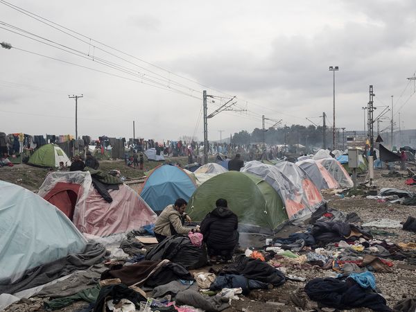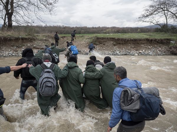 At the beginning of 2016 I am in Idomeni once again .A fence has been erected along the border line thus preventing the crossing from Greece to FYROM .Refugees by the thousands are entrapped there and live under wretched conditions .One morning a large group moves parallel to the border line. They will attempt to circumvent the barrier .An elderly man approaches me and thanks me for the hospitality in Greece. That very afternoon the army of FYROM will capture and return them to Idomeni.I will run into him again at the settlement in Idomeni within the next few days.
