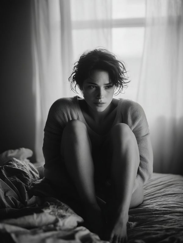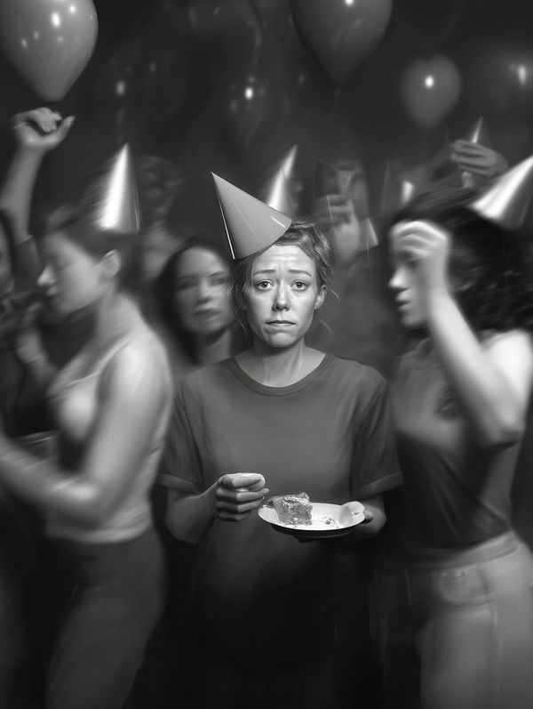 A visual study of depression hidden in everyday gestures. The body continues its routine — smiling, working, moving — while the silence inside grows unbearable.