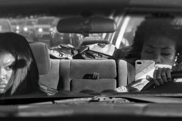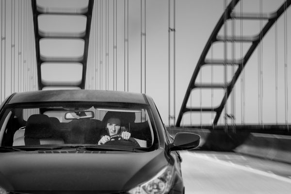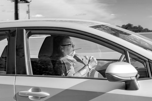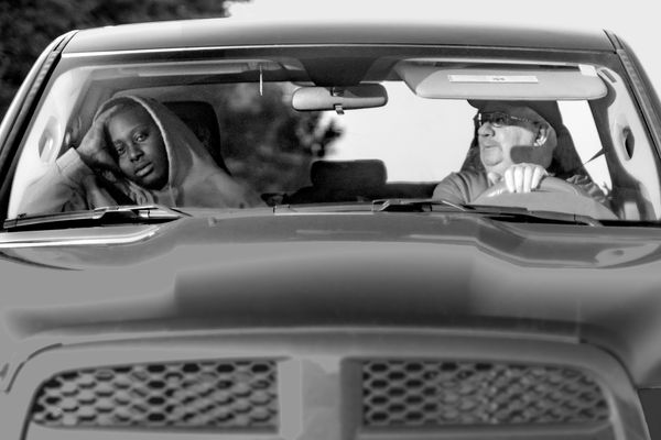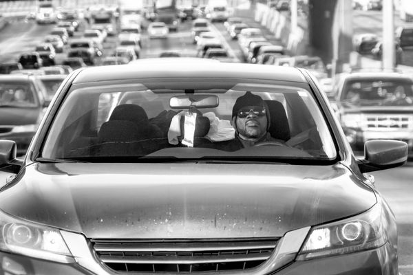 As a driver and an inhabitant of this bardo, I create landscapes of these non-places as well as portraits of my fellow travelers. The landscapes set the mood, creates the psychological space for the portraits, and provides the context for them. I am drawn to the portraits that speak to the experience of being outside of time and place, images of people who experience the interstate journey as I do, images of people that share my conflicting need for isolation and connection.