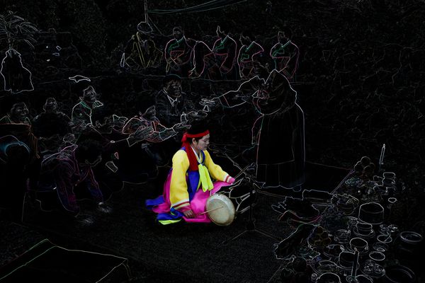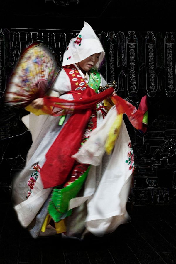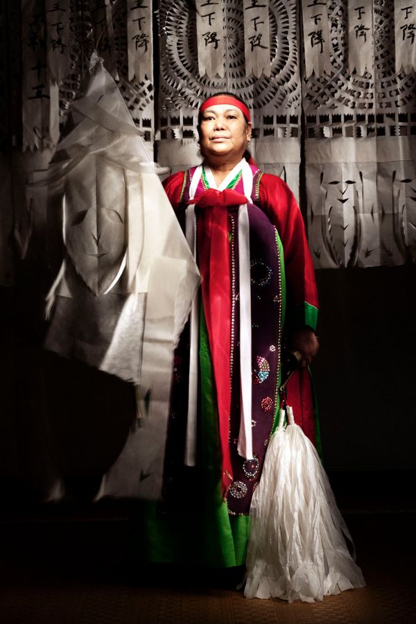In South Korea, it is women who have most the power to be Shamans. Beyond the hyper visuality of the spectacle of trances during the rituals, the photographer looks at the mirror of the invisible. She wonders about the other side of the set, the "world of spirits" to which the shaman has access.