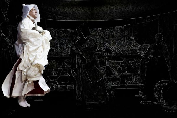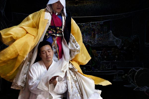 Fascinated by the light of the spirits, Flore-Aël Surun was bound to rub shoulders with the sparks of shamanism and to taste the bewitchings of dances between real worlds and unreal worlds where the Mudang (shaman) communicates with ten thousand spirits.