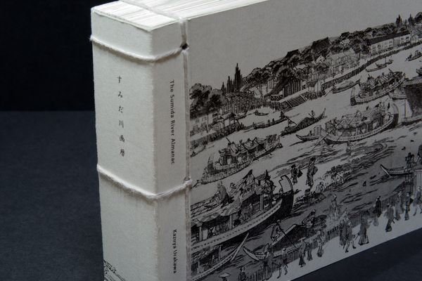 The Sumida River Almanac is bound in the traditional Japanese style and contains fixed-point observations of the river taken daily from 24 March 2019 to 24 March 2020, alongside archival images of historical river-related events that occurred on the same day in previous years.