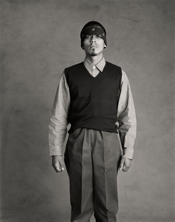 The opportunity to make these studies arose while shooting a Time magazine assignment about Mexican-American immigrants in the East Los Angeles barrio of Boyle Heights, where I found myself getting eyeballed by The White Fence, L.A.’s oldest and most violent gang, dating back to 1900. Their history is as unforgiving as the streets they rule. But what struck me wasn’t menace; it was their pride—a theatrical, self-curated, visual assertion of identity and razor-sharp grammar of style: wardrobe as semiotics. I proposed portraits not on the street but in my studio, a neutral zone many miles from their turf,—closer to Beverly Hills than Boyle Heights.