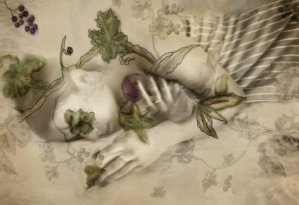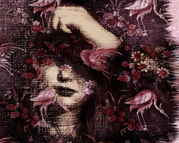 This series is based on the 19th century short story, The Yellow Wallpaper. In the story, the author describes a mother’s descent into madness. She rips wallpaper to free a woman she believes is trapped inside the wall. In my images, the girls and women often seem tangled amidst the flowers, geometry, and toile.