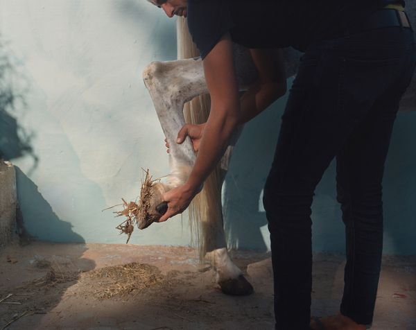 This on-going project focuses on her friend Achraf, whom she had known since he was eight years old. She returned to Morocco to explore Achraf's relationship with his horses, their friendship, and to document his life as an adult. Rather than following a set schedule or routine, Ebrard relied on her intuition to guide her through the project. She wanted to discover the unique qualities of Achraf's character and to capture the beauty of his life in every corner.