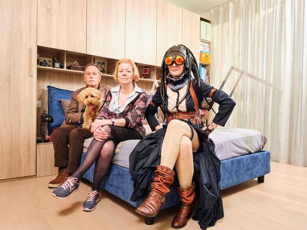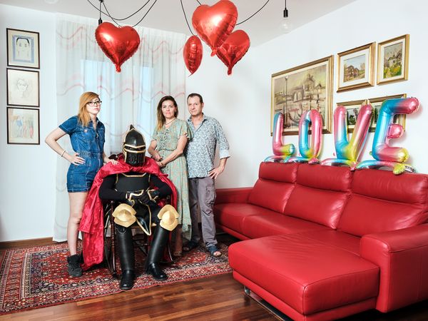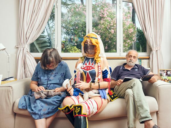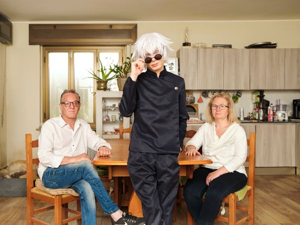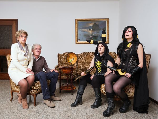 "THEY DON'T LOOK LIKE ME" is a photographic project composed of a series of portraits of cosplayers together with their parents, whose intent is to reflect on the theme of individuality through the world of Cosplay, in which young protagonists play characters taken from manga, anime or video games, exploring new identities, for fun but also to better understand themselves, abandoning for a while the social identity determined by the role often imposed by the context in which they live. Drawing inspiration from John Olson's photographs published in Life in the 1970s, I portrayed cosplayers as rock stars together with their family to emphasize the contrast not only generational but metaphorical between social identity, represented by mom and dad, and individual identity, told through fictional characters.