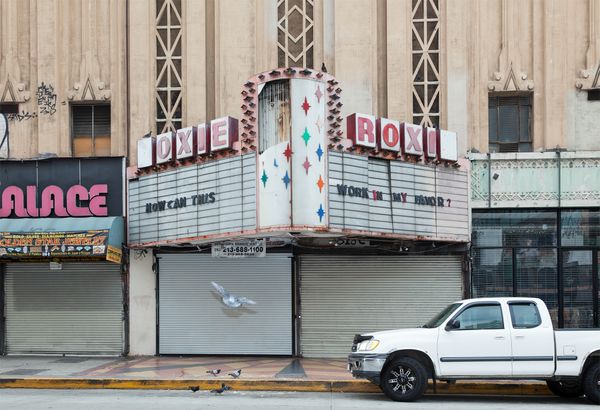 Thoughts on Romance from the Road uses photography to document my text interventions on roadside marquee signs. By placing intimate, diaristic language in public view, this work also explores the contemporary impulse to create a public version of ourselves. I wish to draw attention to the evolving manner in which we experience desire, and how that desire is implanted and delivered within our collective minds with the use of our ever expanding repertoire of technology and entertainment, both of which we desire in and of themselves.