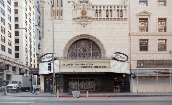 I place phrases on movie and motel marquee signs, using my own sign letters and leaving the scene with the words left intact. Before I depart, I make a photograph from the sidewalk or roadside. The photograph becomes the sole remnant of the project as the letters inevitably disappear or are taken down. In its brief existence, each sign installation is read by an audience encountering the work in spaces where they expect to see movie titles or public announcements. The text phrases are the voice of an individual and are deliberately personal and vaguely melancholy, sharply contrasting with upbeat advertisements or movie titles. My texts are formulated to read as though they are public diary entries referencing banal realities of self and relationships based on comparison with an ideal.