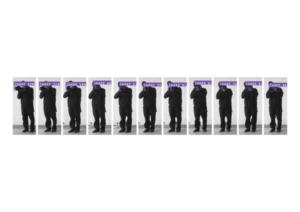 Top used self-portraits of himself aiming the LBD at various angles and lighting conditions to train an object detection algorithm. This system, optimised to recognise a person holding the gun from a distance of approximately 8 metres, can be used on a Raspberry Pi (computer platform) equipped with a camera and a robotic arm. When the algorithm detects the LBD, it directs the robotic arm to track the person holding it.