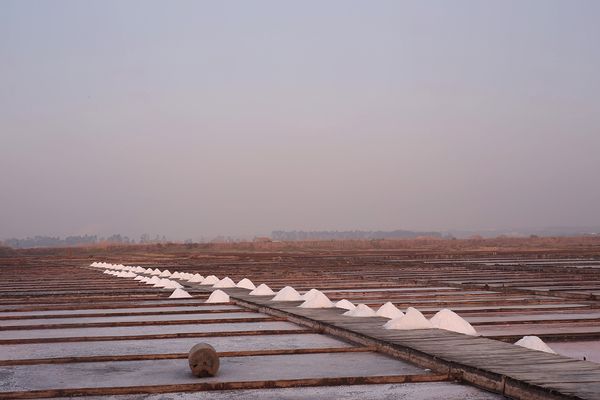 Women no longer carry thirty kilos of salt of a single colour on their heads, shifting the weight, building white walls in wooden houses, but the bodies still guide themselves by the threads of land, day after day, as they bring order to the beaches and carefully work the seascapes. Salt cannot be rushed or trusted. When it is left for the night, no one can guess how it will be in the morning. Only those who understand its whims know how to bring back its whiteness.