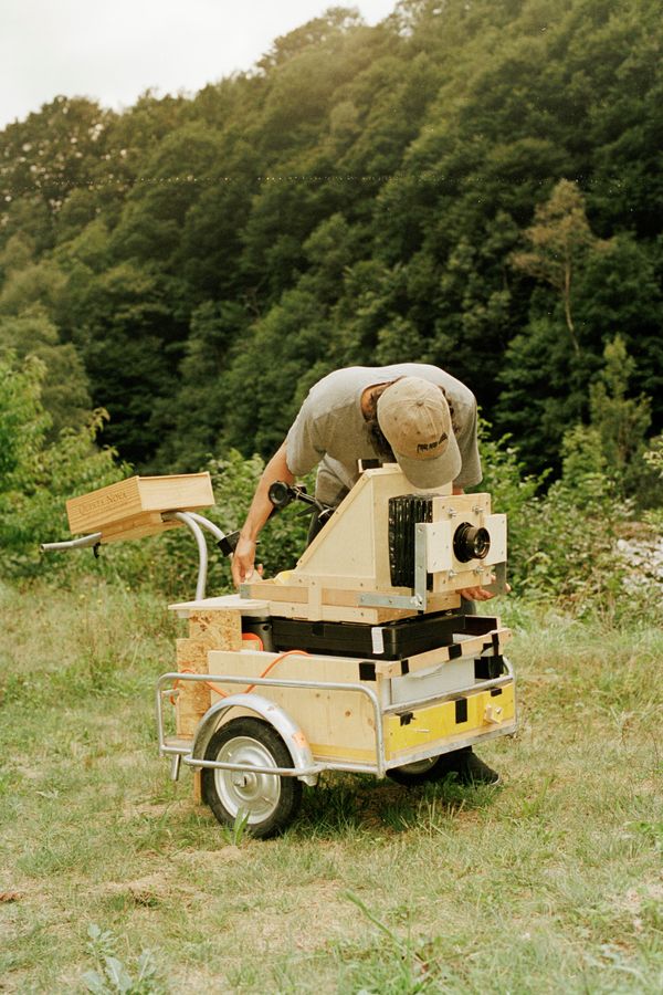 For this project, I carried my equipment on a trailer attached to a bicycle, pedaling up and down the Verzasca Valley in Switzerland. This mobile setup allowed me to “scan” the landscape, a process that conceptually mirrors the movement of the photocopier’s sensor traveling across the glass. This performance-in-tensive endeavor pays homage to early mountain photographers who carried heavy wet-plate cameras to capture the peaks.