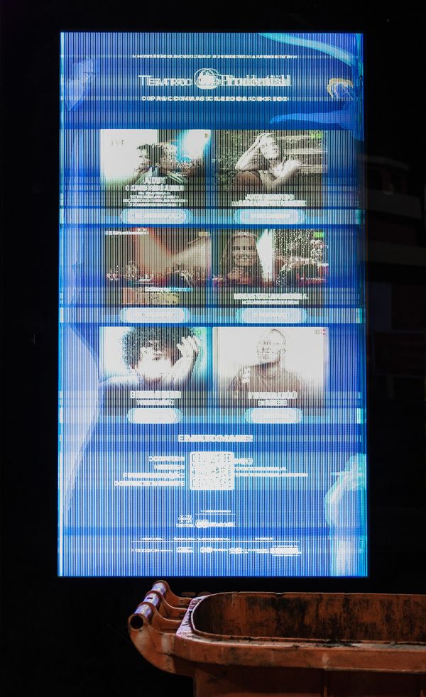 Tranquility Haze is a photo-series documenting the panoptic creep of technological surveillance into all aspects of sensuality and spirituality. In my journey between New England and Rio de Janeiro, I captured digital ad panels and cctv monitors I found on the way. In fleeting moments that remind us of the monitoring presence of technology and nature into our most intimate lives.