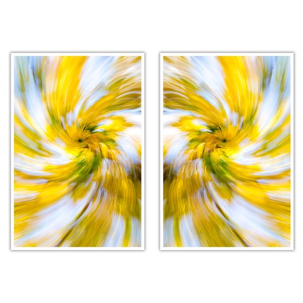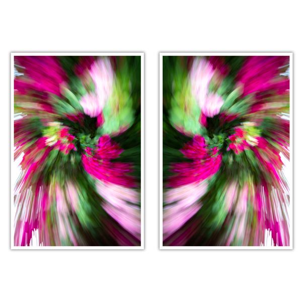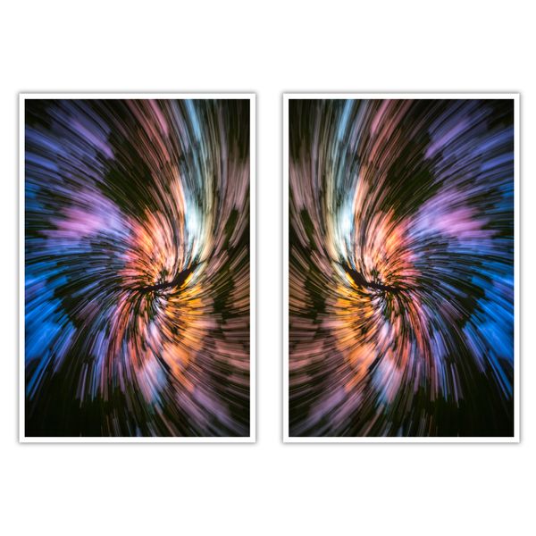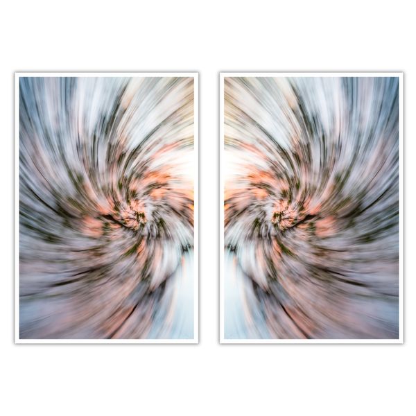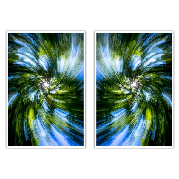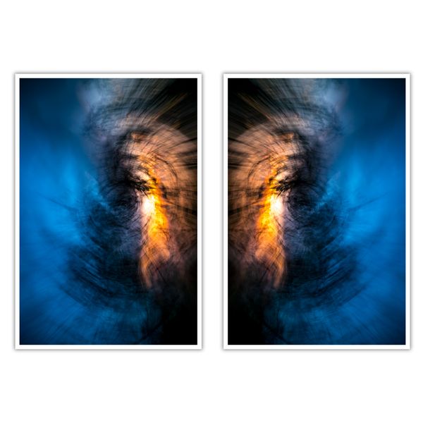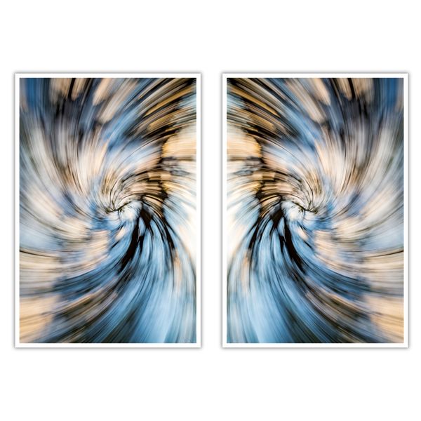 In a serendipitous accident, at some point, my beautiful wife was helping me design a book. She digitally flipped an artwork, viewing them side by side symmetrically in diptych. Stunned by what we saw emerge from the diptych, we both knew there was no going back. Not only did I want people to experience my art on its own, in four different ways. But I now want everyone to also experience every possible orientation and arrangement of the diptychs. Each one revealing a completely new visual experience.