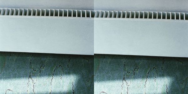 Each photograph in this series pairs two frames that appear, at first glance, identical. They are not. The differences between them — sometimes stark, sometimes barely perceptible — enact the unreliability of recollection itself. Within individual images, too, there are misfits: objects and moments that resist the coherence of the scenes they inhabit, held in place by some invisible thread rather than any clear logic.