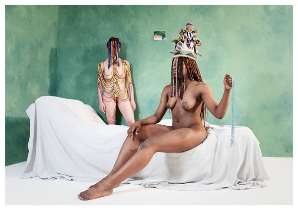 Starting with a recreation as faithful to the original as possible, then going through different scenarios, it leads to a contemporary reflection in which both women appear reading books as Afrotopia by Felwine Sarr (co-creator with Benedict Savoy of the report commissioned by French President Emmanuel Macron on the issue of looted objects in French museums, notably the Quai Branly Museum in Paris) or Loot: Britain and the Benin Bronzes by Barnaby Phillips.