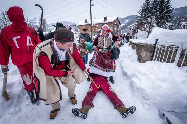 Here it is how the story of pride, resilience, rebellion, culture and tradition are intertwined in the small village of Vevchani in Republic of Macedonia. Once a upon time, far far away beyond all sorts of countries, seas, and rivers, in a country, where the forests are very thick, and the rivers are very swift and strong there was a little village that was born by the name of Vevchani. As the country been going through hard times and turmoil’s throughout centuries, the people of this village have shown resilience and remained true to their values, culture and tradition. At least some 1400 years ago that spirit of rebellion, culture and tradition started reaching a climax every year during the village's annual carnival in January, where villagers started donning costumes that reflected pagan rituals. What started as pagan ritual have grown to become today one of the most famous Carnivals on the Balkans. The Carnival that has been ongoing for centuries is an interesting mix of paganism and modernism. It is held on 13 and 14 January (on the eve of and at the first day of the New Year, according to the old orthodox calendar), or day of the Saint Vasil. The main characteristics of the carnival are archaism, secretiveness and improvisation. The sharp satire leaves nothing untouched, targeting the national leadership, politics, religion and social issues. According to its specific features, this Carnival its unique and one of a kind. The arena of the carnival event is the whole village of Vevcani, which turns in an open theater of its kind where each house, each street is a scene onto which disguised people perform their plays like real actors. There are three traditional masks: bride, groom, August the Stupid and musicians. The bride is man disguised as a woman, dressed in traditional folk clothes. The role of August the Stupid is particularly distinct. Young people, full of energy bear this mask and communicate with the audience by peculiar movements and gesticulations, waiving with whips made of animal tales trying to chase away the bad spirits as they walk ahead of the bride and the groom. In the early hours of the 14th of January on temperatures down to -20C around 2am most of the village follows the bride and the groom to the springs where they collect water that they use to make the special bread the next morning. In the morning of the 14th all disguised people also called Vasilicari go around the village visiting each household that has the name of Vasil,dancing and singing in each house. During the carnival, the disguised participants enjoy all possible freedom and passion to “place the world upside down”, freedom in which the creativity of the spirit is expressed, as well as the sense for improvisation, criticism and sarcasm. On the end of the Carnival the masks are taken off and burned in the middle of the village a symbolic act of purification to chase out the evil spirits.