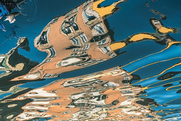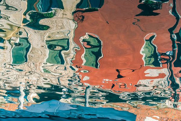 Art is not just found hanging on the walls of La Serenissima, the city of water. Whether you are walking, riding or rowing, the liquid canvases of Venetian canals offer a panoply of art styles to the everyday observer. The combination of boat traffic, current, and breeze dissipates a realistic rendering of the city’s colors, forms, and lines into disjointed elements that transform into eye-popping examples of every possible art style. The colors are rhythmically boosted by the undulations of the water. On the canals, reality and imagination exist side by side as the pastiche of colors and forms repeatedly mesh, dissipate and regenerate.