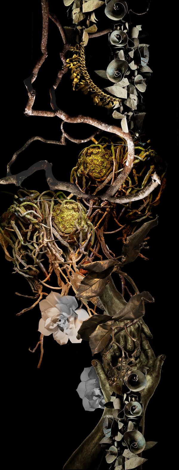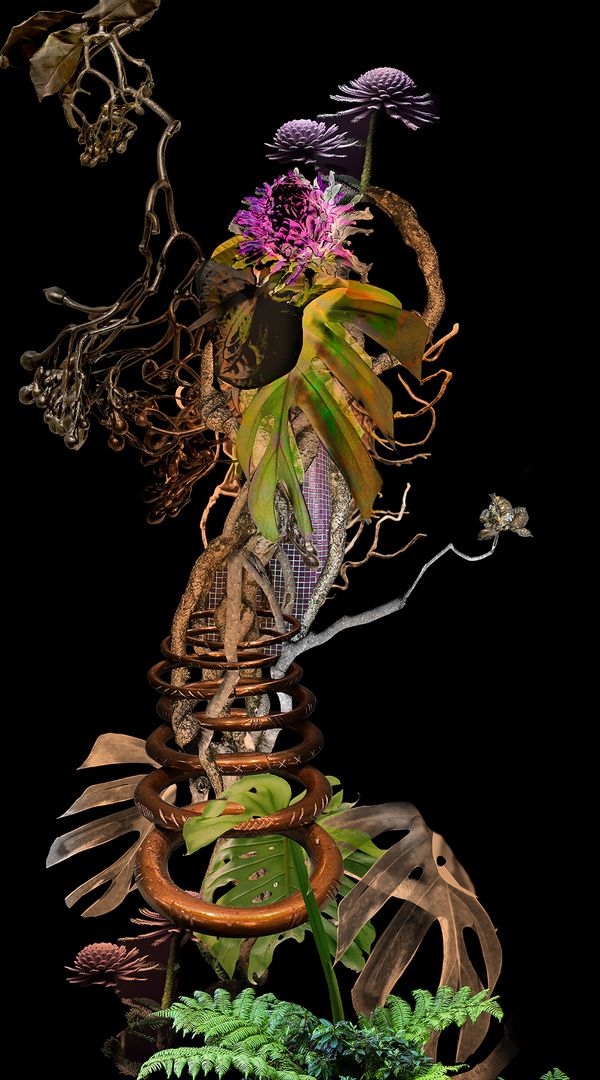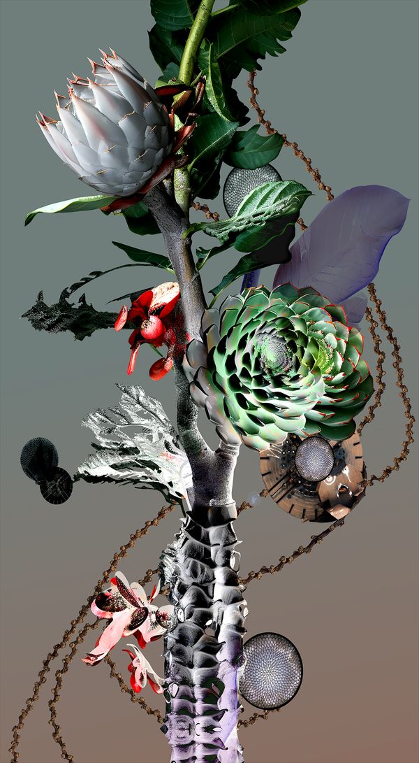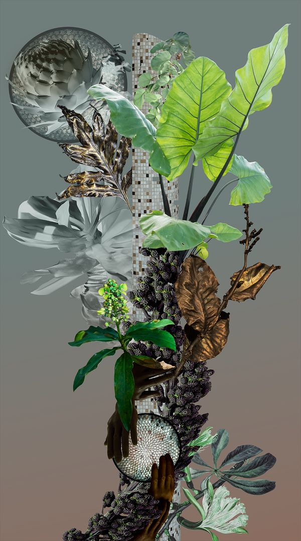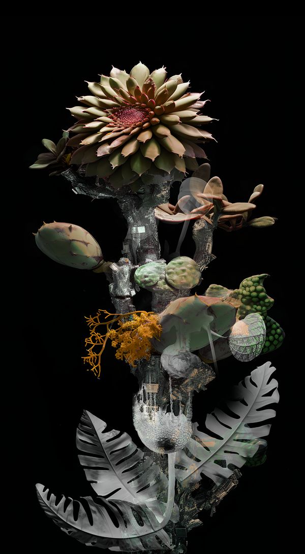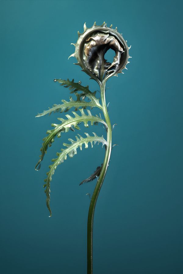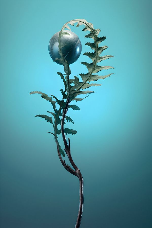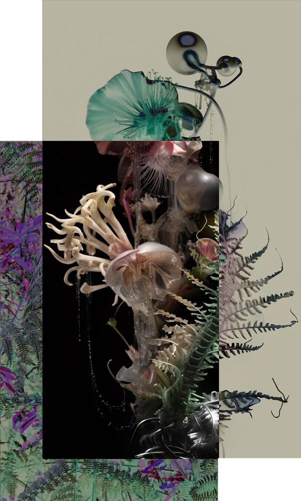 In more recent series, I explore hybrid botanical forms and emerging fern sprouts—symbols of both regeneration and mutation. These compositions combine traces of natural and artificial worlds, reflecting a contemporary experience of nature that is inseparable from human presence and intervention.