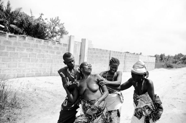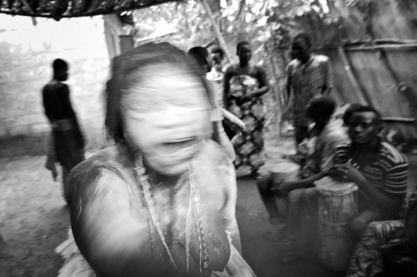 The town of Ouidah - Benin is the spiritual capital of Vodun in West Africa. Vodun is their national religion. Presently there are an estimated 50 million worshippers worldwide. An important aspect of the religion is spirit possession, through which the spirits speak to the devotees only for a short time during the ceremonies. This trance mechanism is a way to heal and get advice about daily matters. From a western point of view, Vodun is seen as mystique religion often associated with black magic, giving way to much misunderstanding. I stayed with the 'Hounongan Zanzan Zinho Kledjé' family who adheres the Gambada fetish or the serpent spirit, the basis of the well-known Damballah cult in Haïti. In Vodun and related African diasporic traditions a primordial way to obtain a spiritual experience is by being possessed by the Iwa or spirit. I was fortunate to encounter and document this intense experience. During a ceremony I witnessed the individual trance of two devotees. The numerous uncontrollable muscle spasms, vocalizations and peculiar eye gazes showed me this was an unfeigned event.