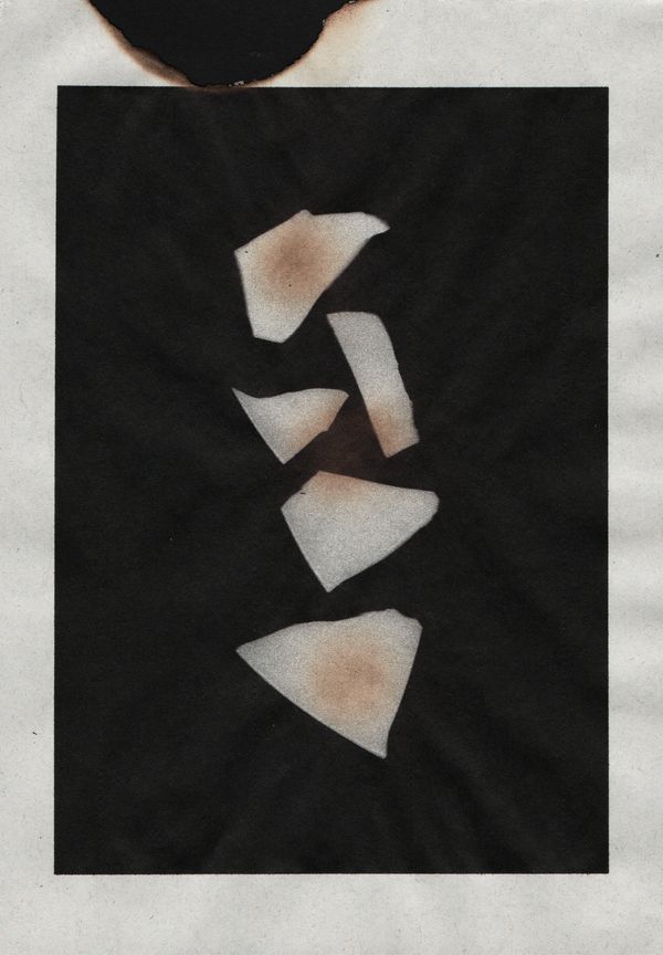 Consisting of five still-life compositions, the series embraces the quiet beauty of imperfection, the kind that time, nature, and accident leave behind. All shots printed on ordinary office paper and intentionally burnt, each photograph becomes more than an image - it turns into an object, a fragile relic touched by both creation and destruction. The scorched edges and uneven tones echo the unpredictability of the analog process, inviting the viewer to reflect on the transient nature of existence.