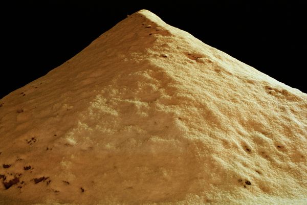 Confined to the city by the shifting weather, I found the surrounding mountains I couldn't reach reproduced in the corners of parking lots: accumulation and light remaking these landscapes quietly. These temporary mounds absorbed both the blue of the sky and the orange of the street lamps, holding a cold distance and a fragile warmth within a single surface.