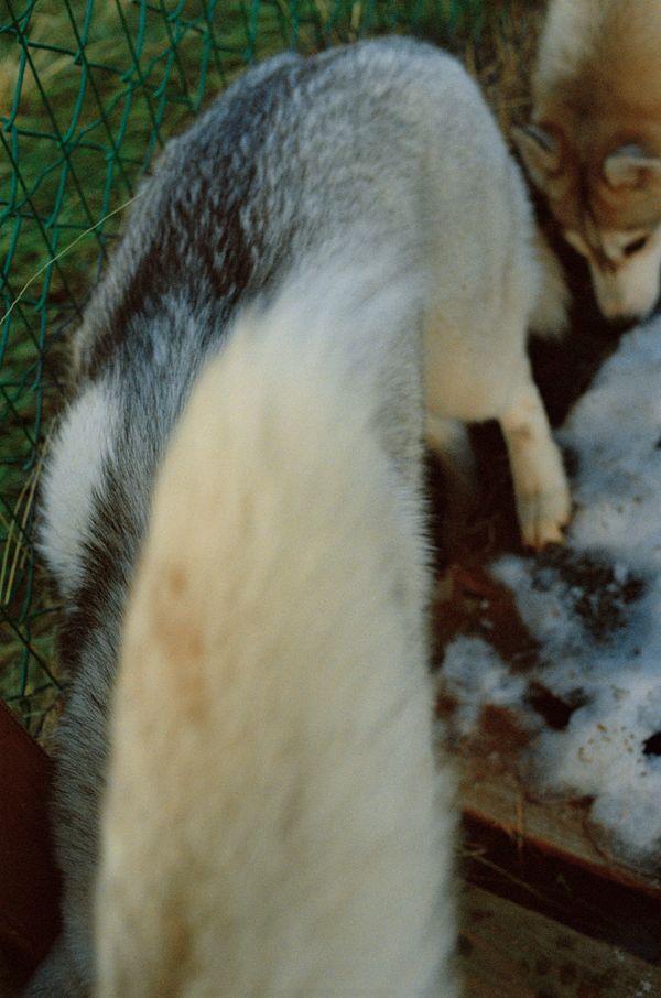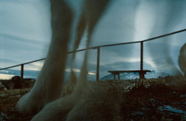 29 huskies, all related—through eye and fur color, subtle markings, and even their individual behaviors—allow Gunnar and María to easily identify each dog and care for them in specific ways. A few of the dogs’ names translate to sleet, snow drift, deep snow, ice, and frost, reflecting fleeting aspects of an already distinct phenomenon. There are complex familial dynamics among the dogs, and María and Gunnar’s deep appreciation for subtlety proposes a new attentiveness.