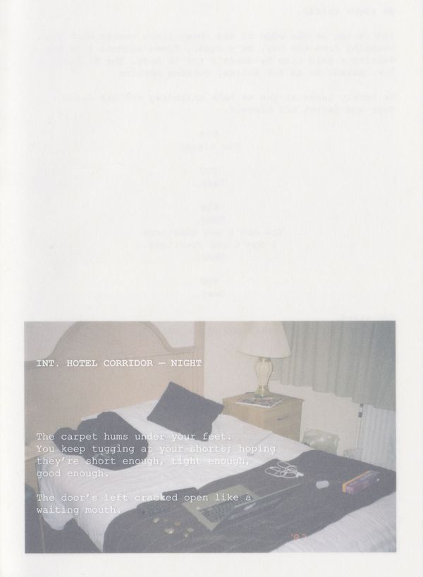 I decided to move toward that fracture rather than away from it. The project took shape as a deliberate act of re-enactment and return. Through photography, poetry, scripts, and diary fragments, I began to restage the emotional terrain I had learned to suppress. Moments of intimacy, avoidance, self-surveillance, desire, and collapse. Many of the images were made in private, transitional spaces: bedrooms, hotel rooms, places of aftermath rather than action. I was less interested in depicting events than in staying with their residue; the quiet, bodily knowledge that remains when language falters.