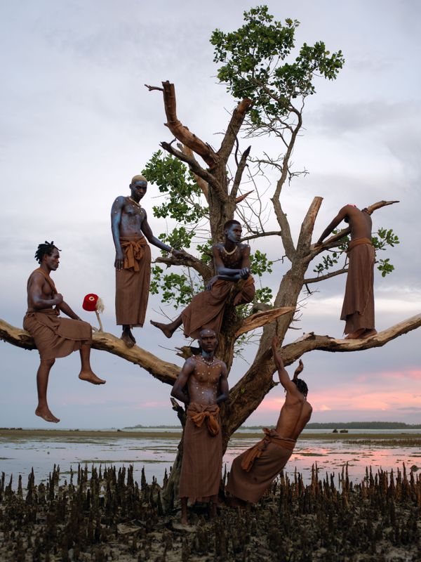 The Meraki collective started its experimental journey in 2018 at Kijitonyama, Dar es Salaam. They found themselves connected to the Greek word ‘Meraki’, which means doing something with so much love you leave a piece of your soul behind in it. A collective of ideas resulting in a visual utopia, created by a group of Tanzanian youth working in different disciplines such as fashion, performance, visual art, music, lifestyle and creative direction. They create an endless portal of transcendence rooted in black culture, black history and black love. ‘Our aim is to express voices coming from the streets of Dar es Salaam city. In the worlds conceived through our imagery, being is a radical act.’ Their visual content aims to start conversation, the clothing collections carry their stories. The scope, variety and inventiveness of what they create challenges generalized conceptions of youth, sexuality, gender, joy and status. They succeed in creating moments steeped in a secure, collective, timeless- ness - a space for existing as a reality of history - one that goes beyond background or status. The approach of the collective remains inviting by channeling these aspi- rations toward conceptions of abundance that are free from consumption, accumulation or conquest. In other words — free from fear.