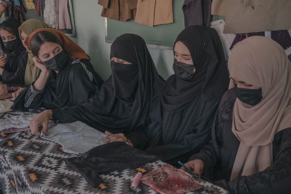 In an act of quiet defiance, Bahareh started a secret sewing class. “We started this class because we need to help our families,” she explains. "The economic situation is dire. We can’t survive without doing something.” She smiles softly.