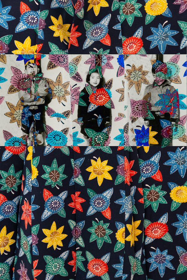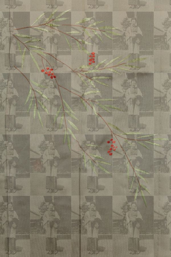 My montage making process involves photographing sections of the garments during a traditional custom called mushiboshi where the kimonos are aired during the dry autumn months. Those pictures are merged with scanned images of archival photographs through different digital techniques. The approach works as a metaphor of my desire to preserve our tangible history, and to reimagine its place in today’s technology-driven culture.