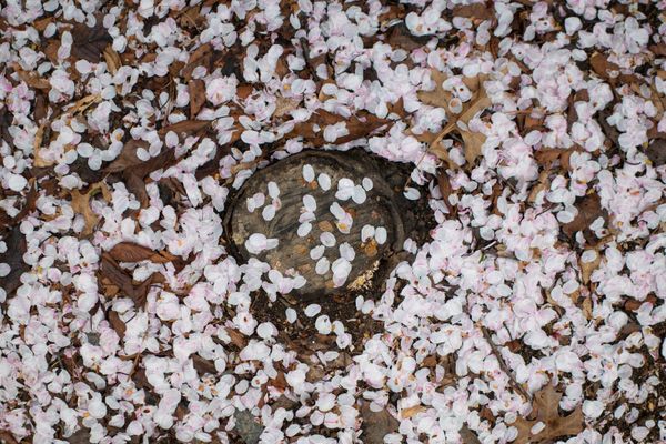 An archipelago is not a single, unified mass, but a constellation of separated presences. Each element maintains its own distance, form, and condition, yet remains connected within a larger rhythm. The fallen petals resemble islands: detached from the tree and displaced from where beauty is typically recognized, yet still participating in a shared field. What initially appears scattered or discarded reveals another order—one shaped not by hierarchy or spectacle, but through accumulation, proximity, and coexistence.