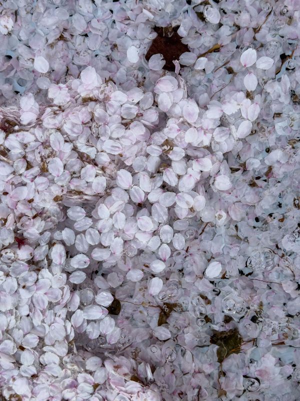 In spring, when most people lift their gaze toward cherry trees in full bloom, I turn my attention downward. What draws me is not only the spectacle above, but the petals that have already fallen. Scattered, separated, and lightly accumulating on the ground, they resemble snow falling in spring. Each petal appears small and insignificant, almost lost. Yet together, they form another landscape—fragile, dispersed, and quietly overwhelming.