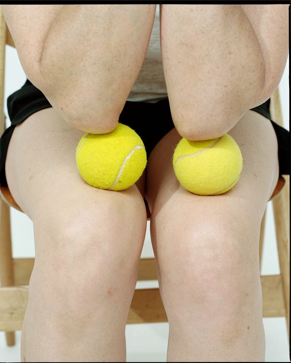 The physical and emotional changes during menopause urge me to do so. I am struggling with the aging process. I suffer from insomnia and depression. My periods have stopped, my hair is getting thinner, and my lips are tighter. The awareness of fading youth and my own finiteness hurts me. I am almost ashamed of getting old, which in turn, embarrasses me. Because the implicitness with which the young and intact body is presented to us as a non-plus-ultra provokes me. The auto-portraits created with self-timers evolved out of unpredictable, everyday movements and performative incidents, which I transform into consciously planned actions for the photographs. I stage quotidian objects such as cushions, fruits, and nylons - motifs referencing art and fashion history, linked to personal experiences. The creation process, in which I strive to show my best side and do more sports and yoga than usual, is also addressed. Still-lifes of memories - like marbles and mixtapes reflect my generation. Old photographs and Polaroids are woven into the series, negotiating the photographic medium itself and bearing witness to transience. In the middle of it all, I watch myself grow old.