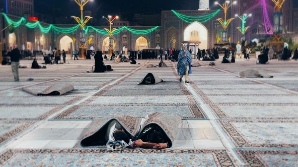 This project was photographed inside the shrine of Imam Reza in Mashhad, Iran, during the early hours between 2 am and 6 am. As a woman who could only enter this space under the restrictions of compulsory hijab, I approached it not to depict holiness, but to witness and record the raw human presence within a site of devotion.