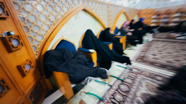 In the shrine’s dim hours, women drift between ritual and sleep—hands on gold, bodies on carpets. My lens traces the fragile line where faith dissolves into exhaustion, and silence holds more than prayer.