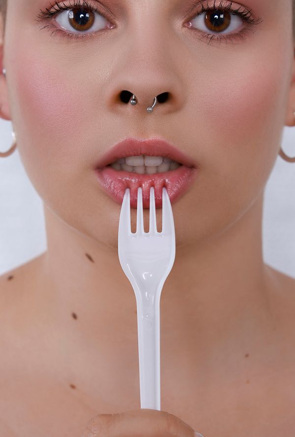 Flavia Raddavero wanted to celebrate the beauty and combativeness of women with a model who has appropriated her body and is shown as a plastic princess. The use of plastic is denounced by a disturbing emphasis on its harmfulness.