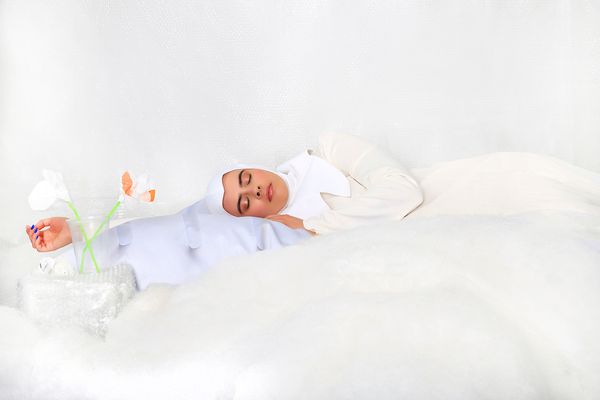 To stage this tension, Flavia Raddavero called on make-up artist Mariame , recycled creations by Yperlab and used the recycled creations of engineer and design doctor Émile De Visscher, whose work includes the Polyfloss plastic recycling machine.