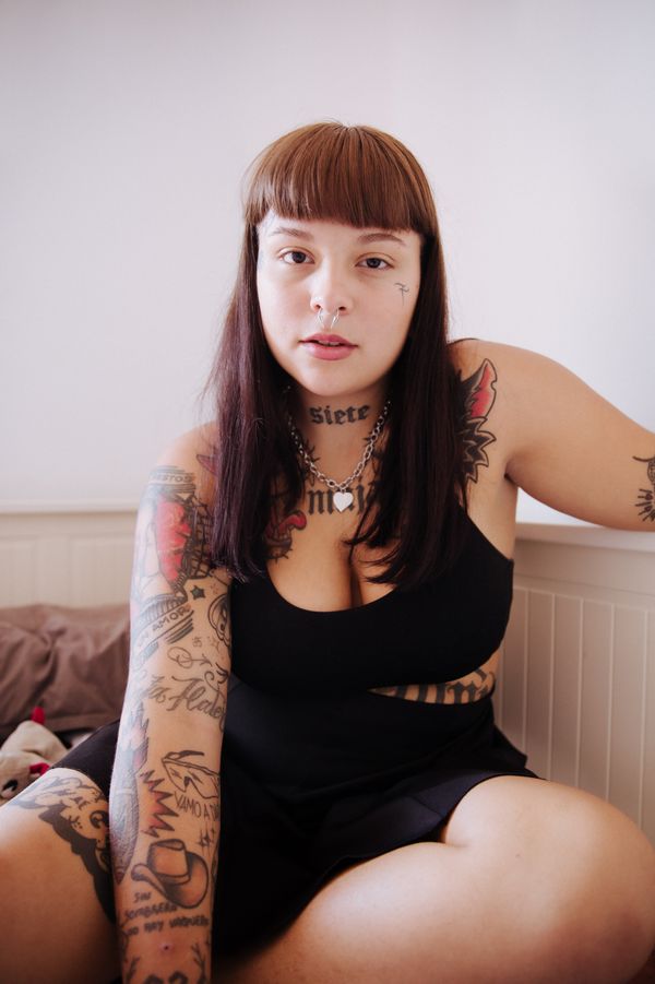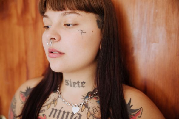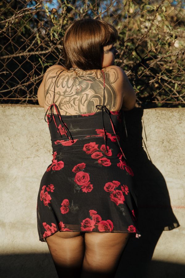We later explored her neighborhood, where she proudly showed me graffiti she had created, a reflection of her artistic nature. Her tattoos, especially the “siete (7)” motif, held personal significance, while the rhinestones around her eyes shows her bold, unique style.
