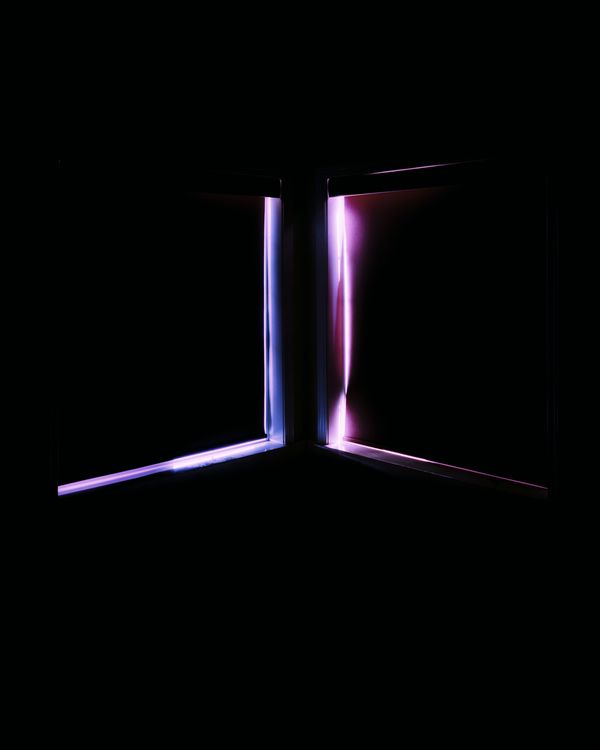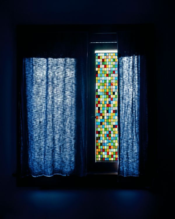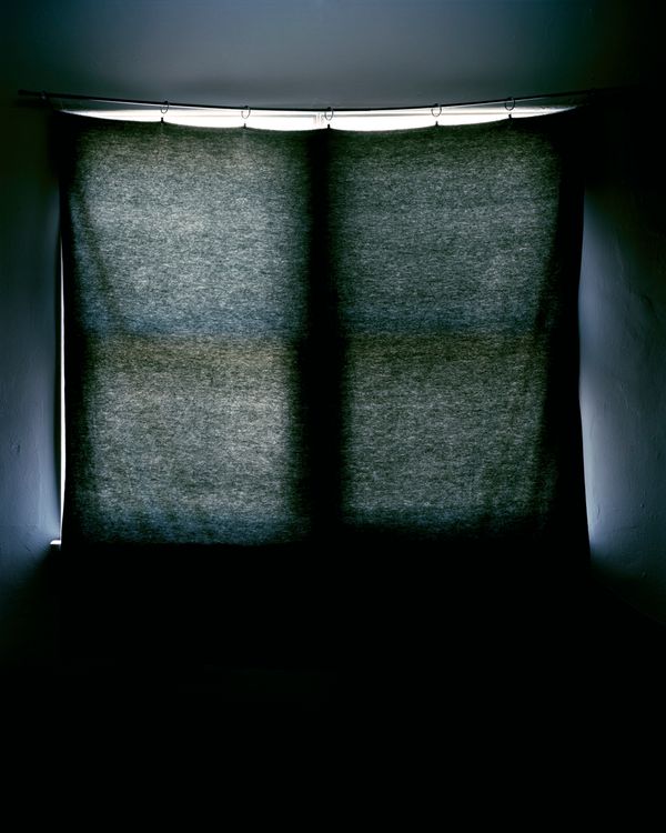 With exposures ranging from eight minutes to one hour, Irving transforms commonplace windows into ethereal objects: trompe l'oeil light sources floating on walls too dark to see. She asks us to take a closer look at what is essentially a framework with panes of glass covered with opaque materials, urging us to consider fenestration as more than a functional architectural addition to an interior. Perhaps these windows are an optimistic look at what opportunities glow behind the curtains, the dressing begging to be pulled back to reveal a traversable portal of light; or maybe these windows are totems of grief and isolation, a funeral shroud blotting out the light that is out there, but that will never be fully let in.